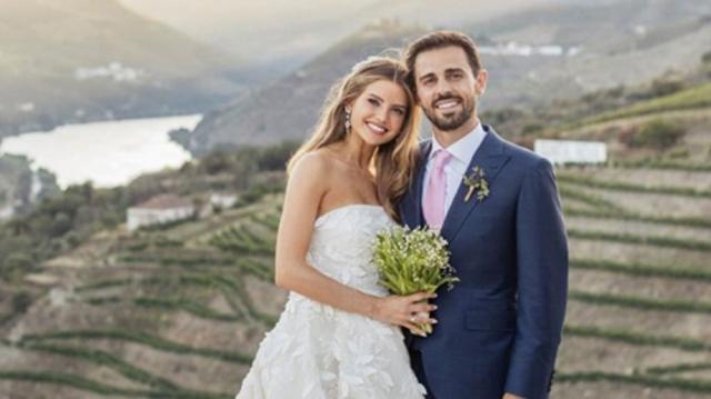 7月1日,曼城中场贝尔纳多·席尔瓦在葡萄牙北部杜罗河边的嘉模圣母新葡萄酒庄园举行婚礼。B席28岁,他的新婚妻子伊内斯·德热内尔·托马斯是一位葡萄牙模特和网红,今年25岁。从婚礼照片来看,伊纳斯的肚子隆起,已然有了身孕。